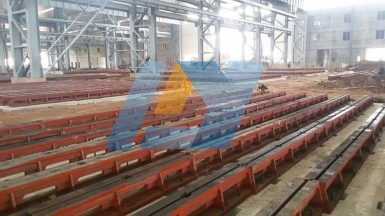 4、將地軌支承點(diǎn)墊好、墊平,包管每個支撐點(diǎn)受力平均,包管整個地軌平穩(wěn)。